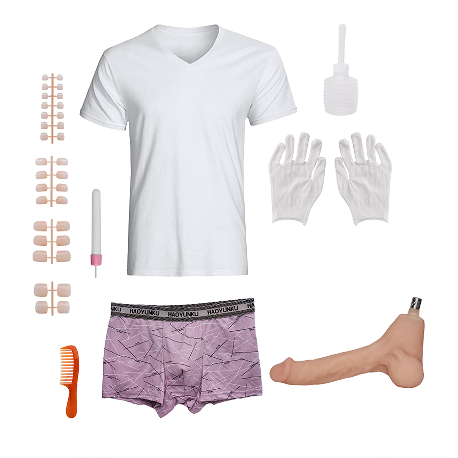 - Incluye: Bóxer, uñas, peinilla, guantes, dispositivo de calefacción, camiseta, cobija y enema para limpieza anal.
