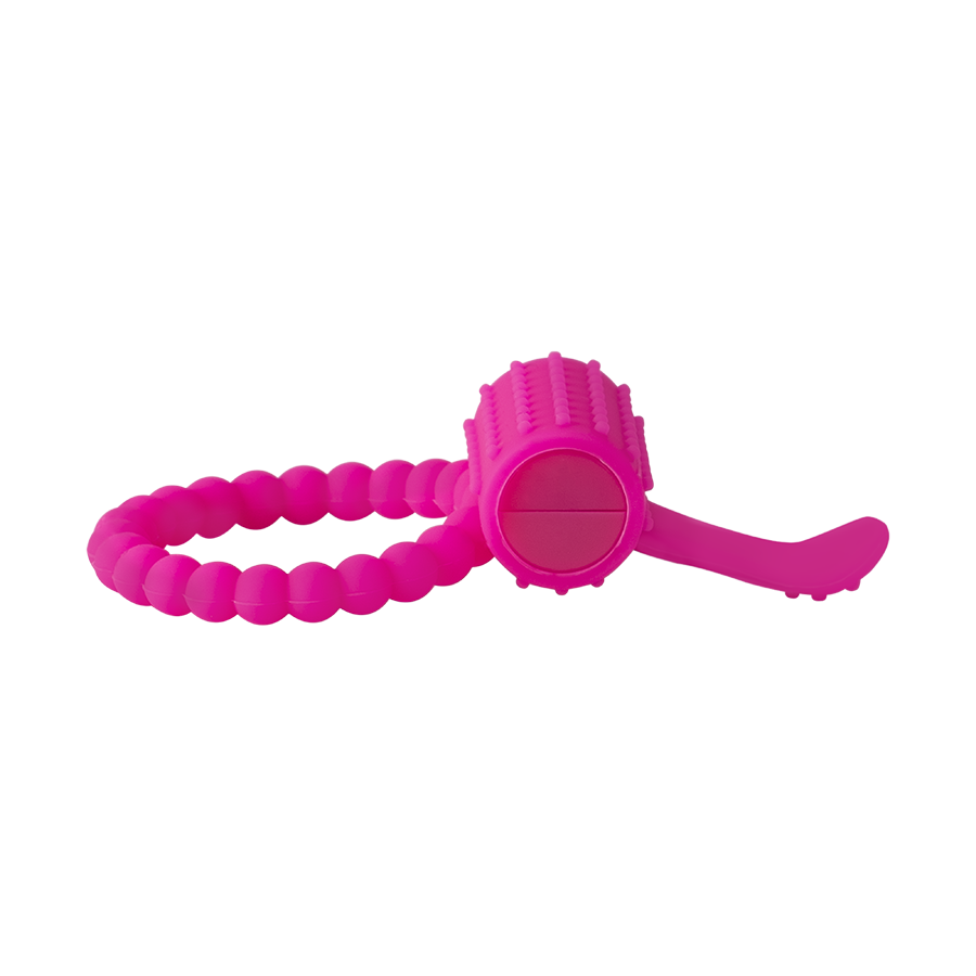 Anillo vibrador diseñado en pequeños nódulos y un estimulador clitorial en forma de lenguita para simular sexo oral.