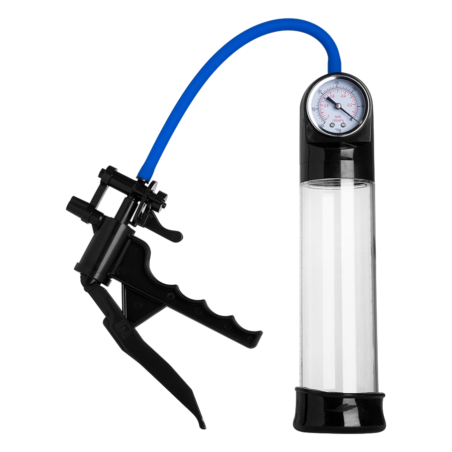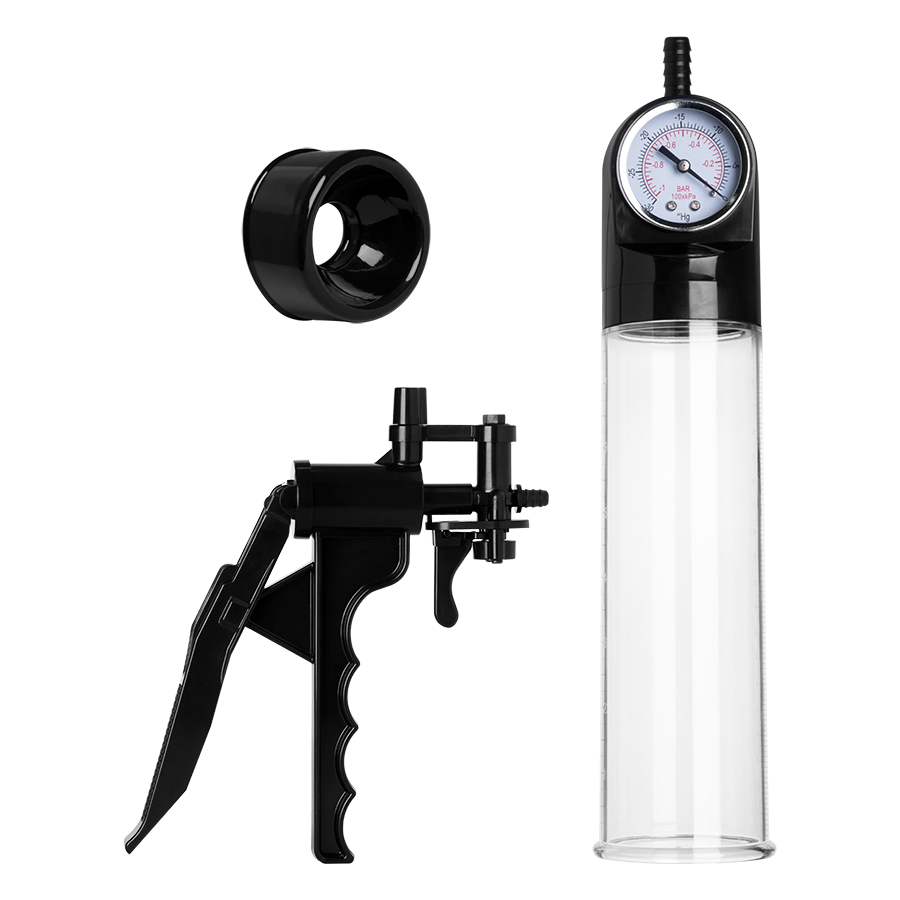 3.Oprima el botón de succión de aire. Habrá una pequeña sensación de estiramiento del pene mientras el aire sale por la manguera. Para principiantes, es importante comenzar este proceso lentamente para evitar incomodidad. Recuerda activar la válvula de escape de aire en caso de sentir dolor.
