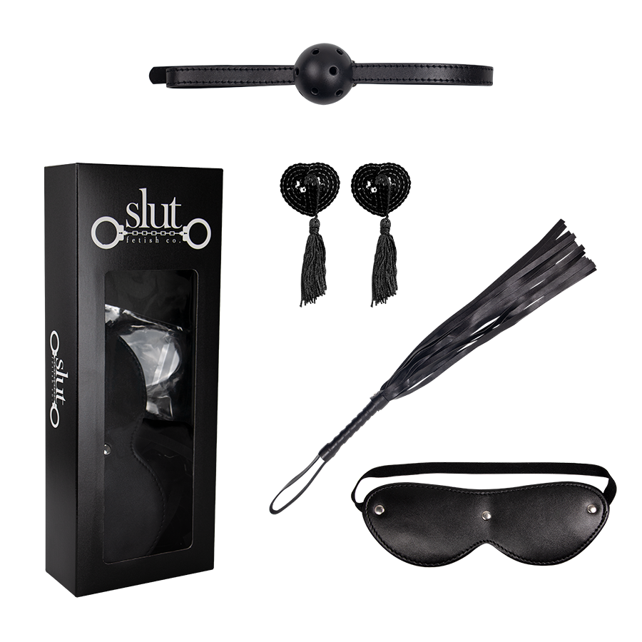 - Incluye: Tapa ojos, mordaza, látigo y pezoneras.