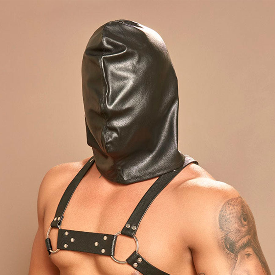 Gimp mask o máscara de ahogo con amarre posterior y en el cuello para mayor control. Sólo para expertos.