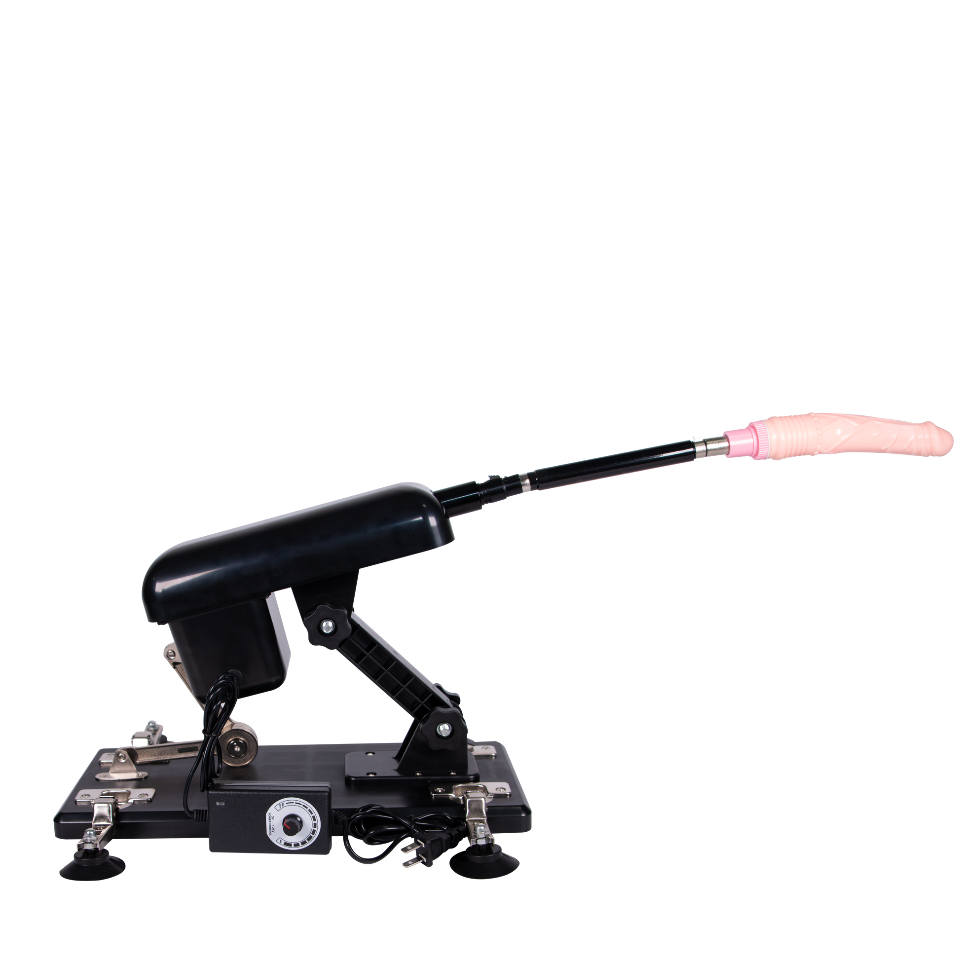 Máquina sexual con dildo realista. Droideka cuenta con cuatro ventosas para adherirse al suelo con muy buena estabilidad. Incluye control remoto para aumentar la vibración y la velocidad del movimiento de penetración.