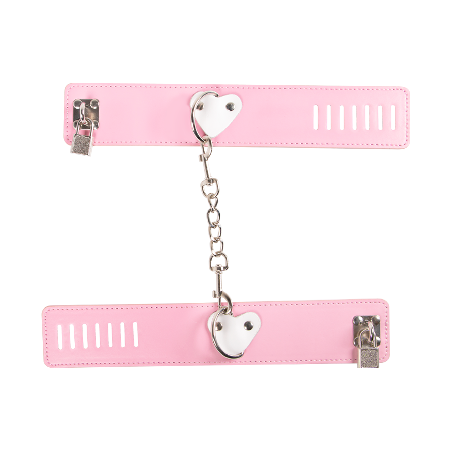 Esposas de cuero sintético con candado, para practicar juegos fetichistas o de dominación.