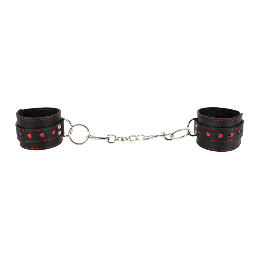 Esposas de alta seguridad con amarre graduable para los pies, para practicar juegos fetichistas o de dominación.