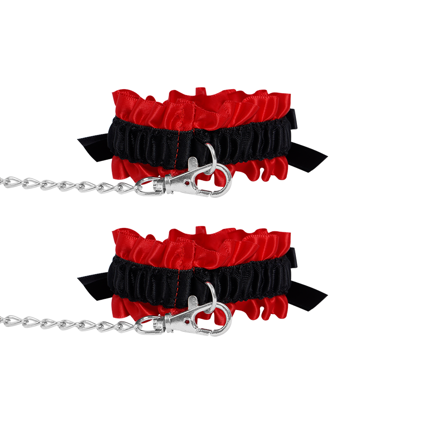 Esposas de tobillos para juegos de dominación sexual con cadena larga que te permite moverte un poco más, sistema de liberación rápido.