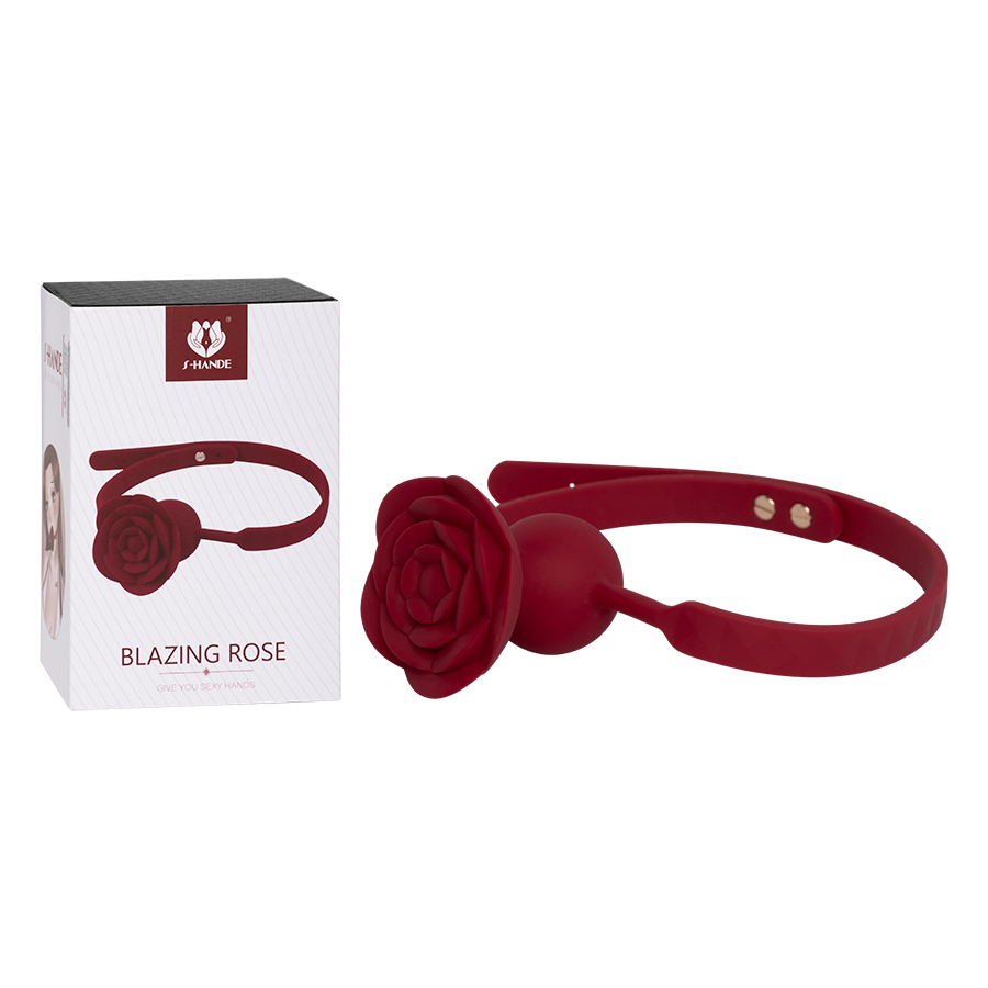 Hermosa Ball gag en forma de rosa y 9 ritmos de vibración que podrás manejar desde su control remoto.