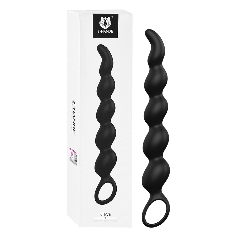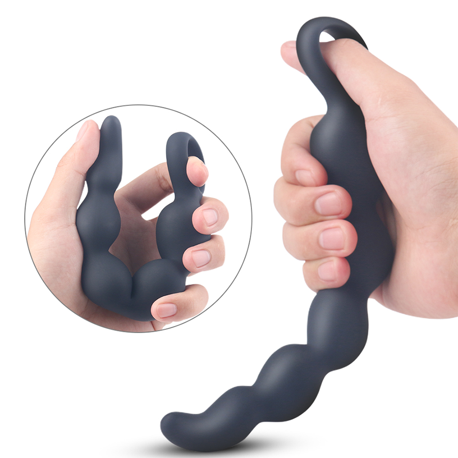 Estimulador prostático con 5 nódulos que aumentan de tamaño de forma gradual, cuenta con un anillo para un agarre y extracción fácil. Fabricado en silicona suave, flexible y segura para el cuerpo.