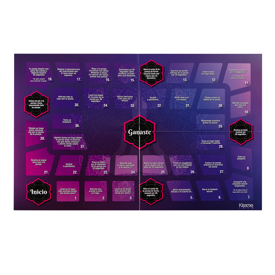 Disfruta de este juego erótico para jugar en pareja o en grupo; comienza con pruebas sencillas, masajes, besos, caricias, a medida que vas avanzando aumenta la temperatura y las acciones se vuelven más candentes.