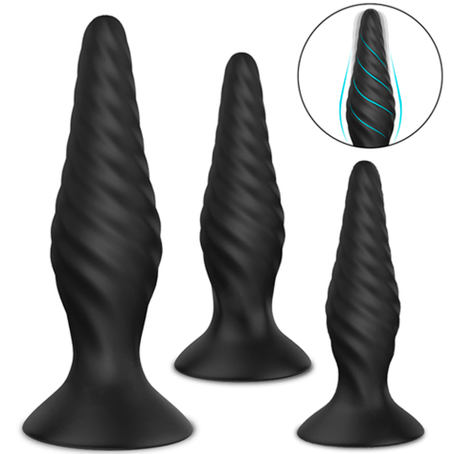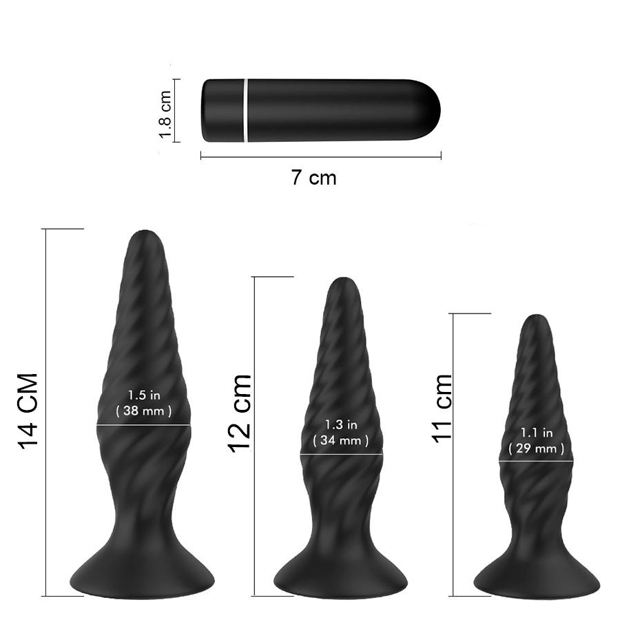 Kit de plugs anales con una pequeña bala vibradora que podrás adaptarla a cada uno de ellos. Sus tamaños son de forma progresiva para brindar una penetración más fácil y placentera.