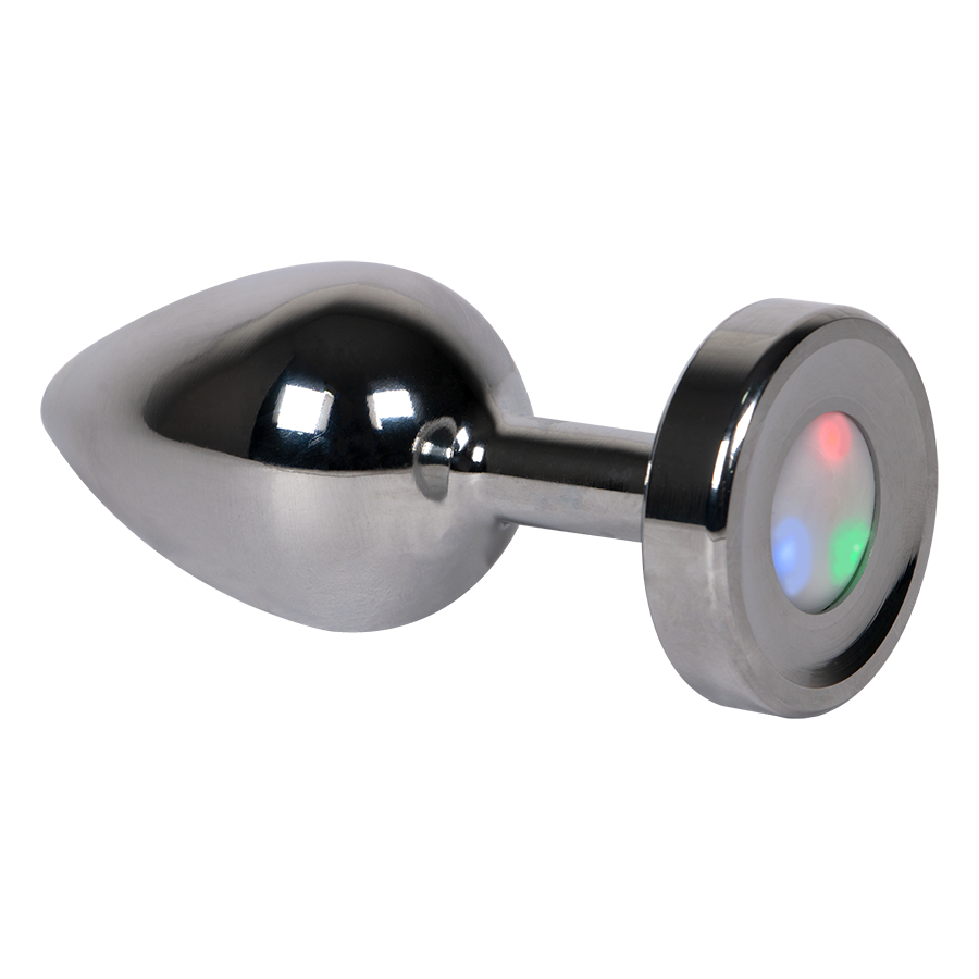 Plug metálico, base con luces de colores y tres modos de iluminación.