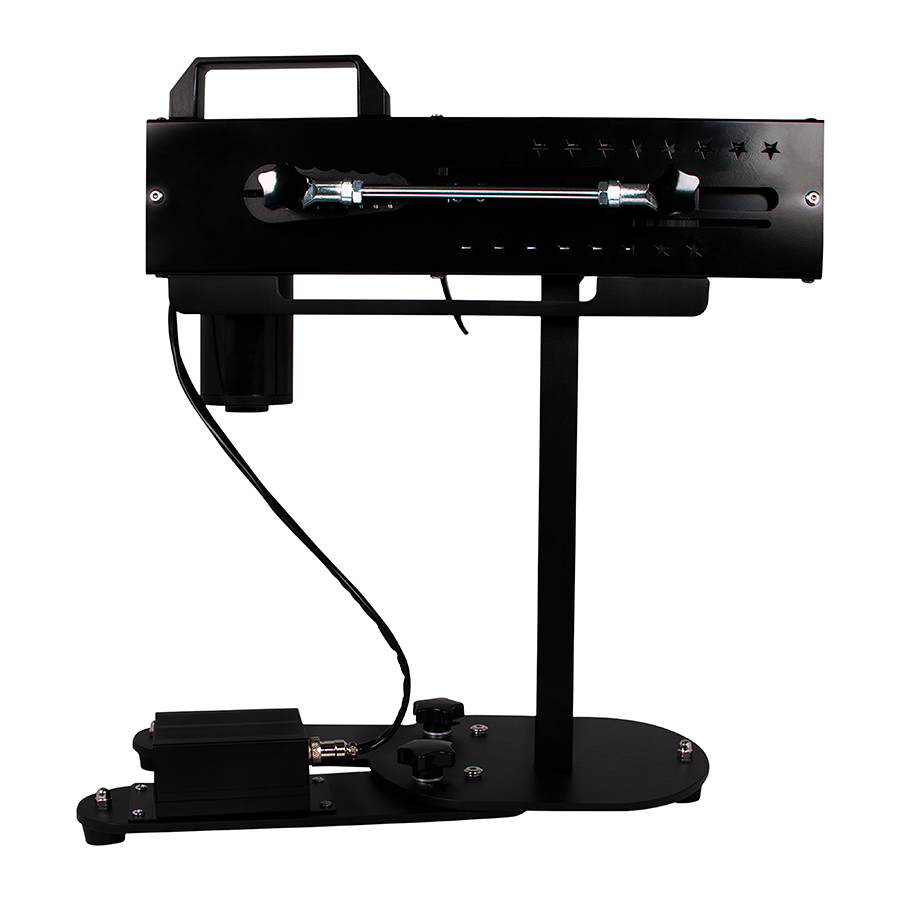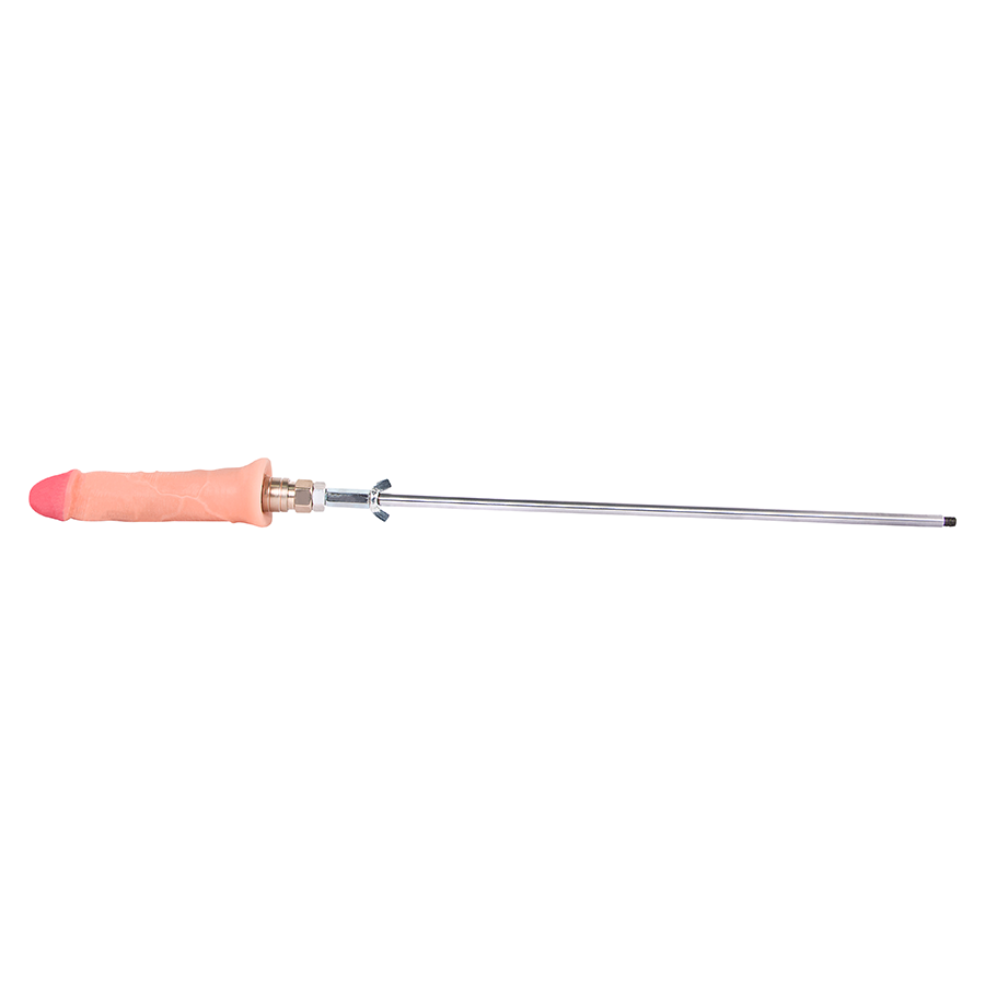 Cuenta con dos extensiones laterales adaptables a dos dildos con puerto de rosca. En su costado cuenta con una perilla que gradúa la distancia de penetración.