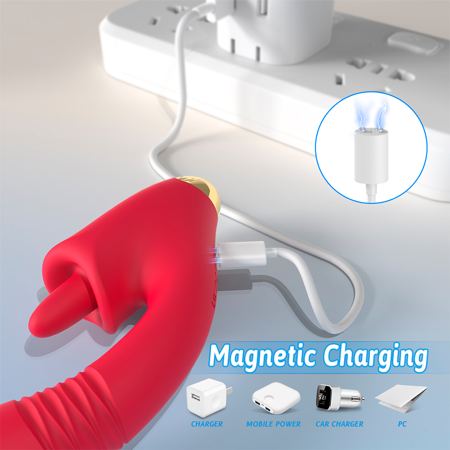 Este vibrador de doble estimulación, zona g y clítoris, imita los movimientos reales de la lengua y brinda una estimulación interna y externa, al ritmo de sus 9 modos de empuje, vibración y 5 modos de simulación de sexo oral, permite varias combinaciones para adaptarse a cualquiera de tus preferencias.